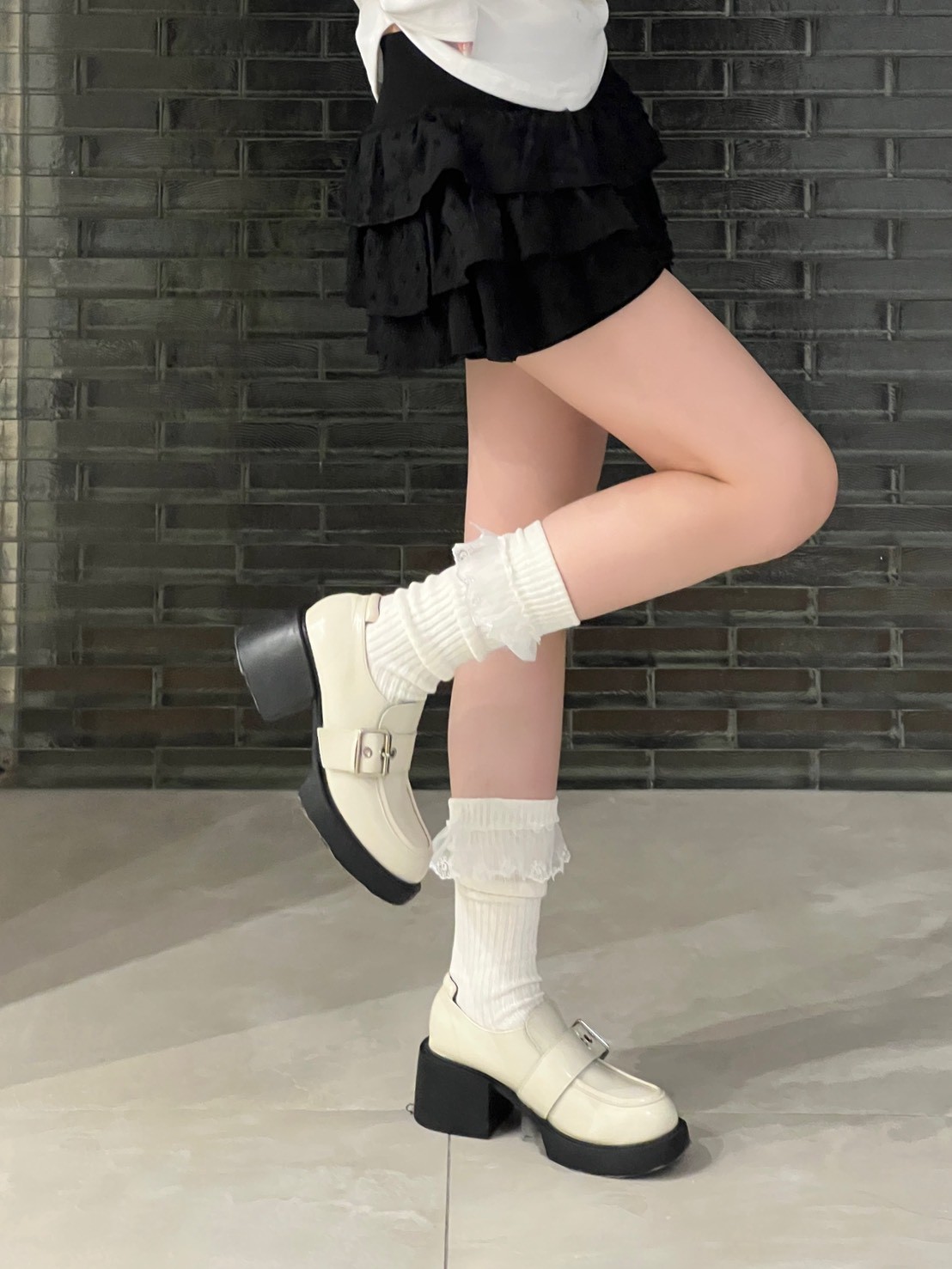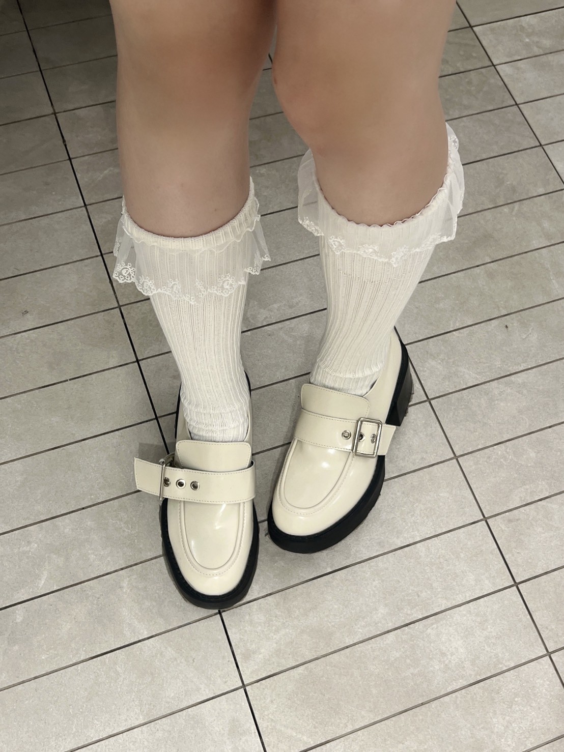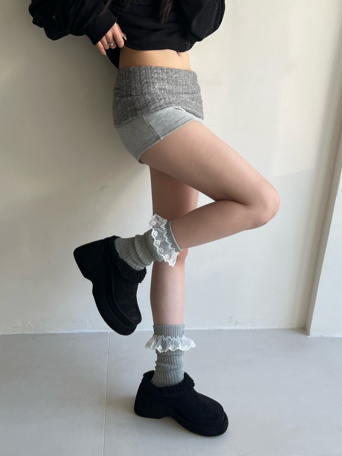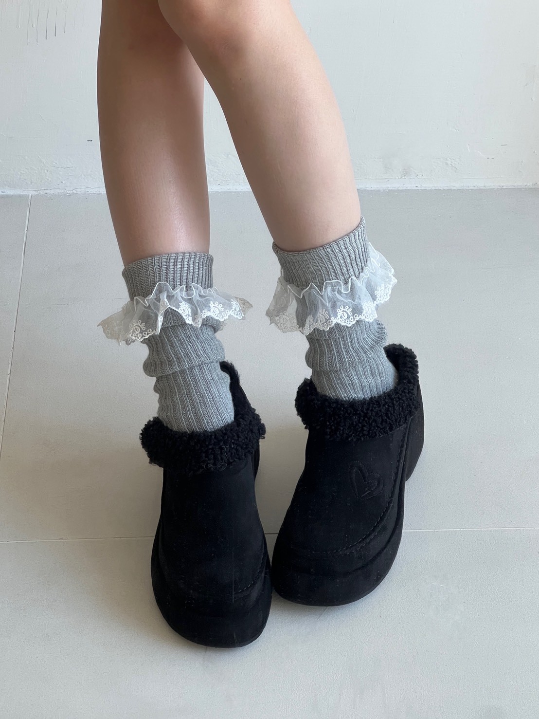 蕾絲花邊粗直坑堆堆長襪