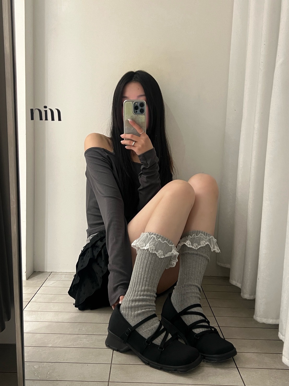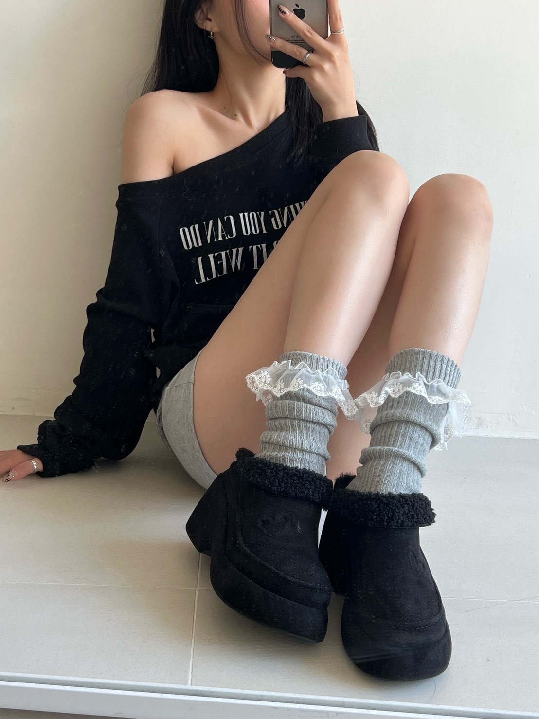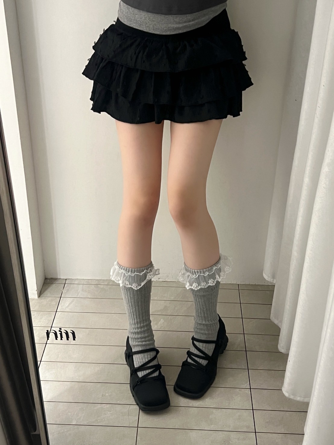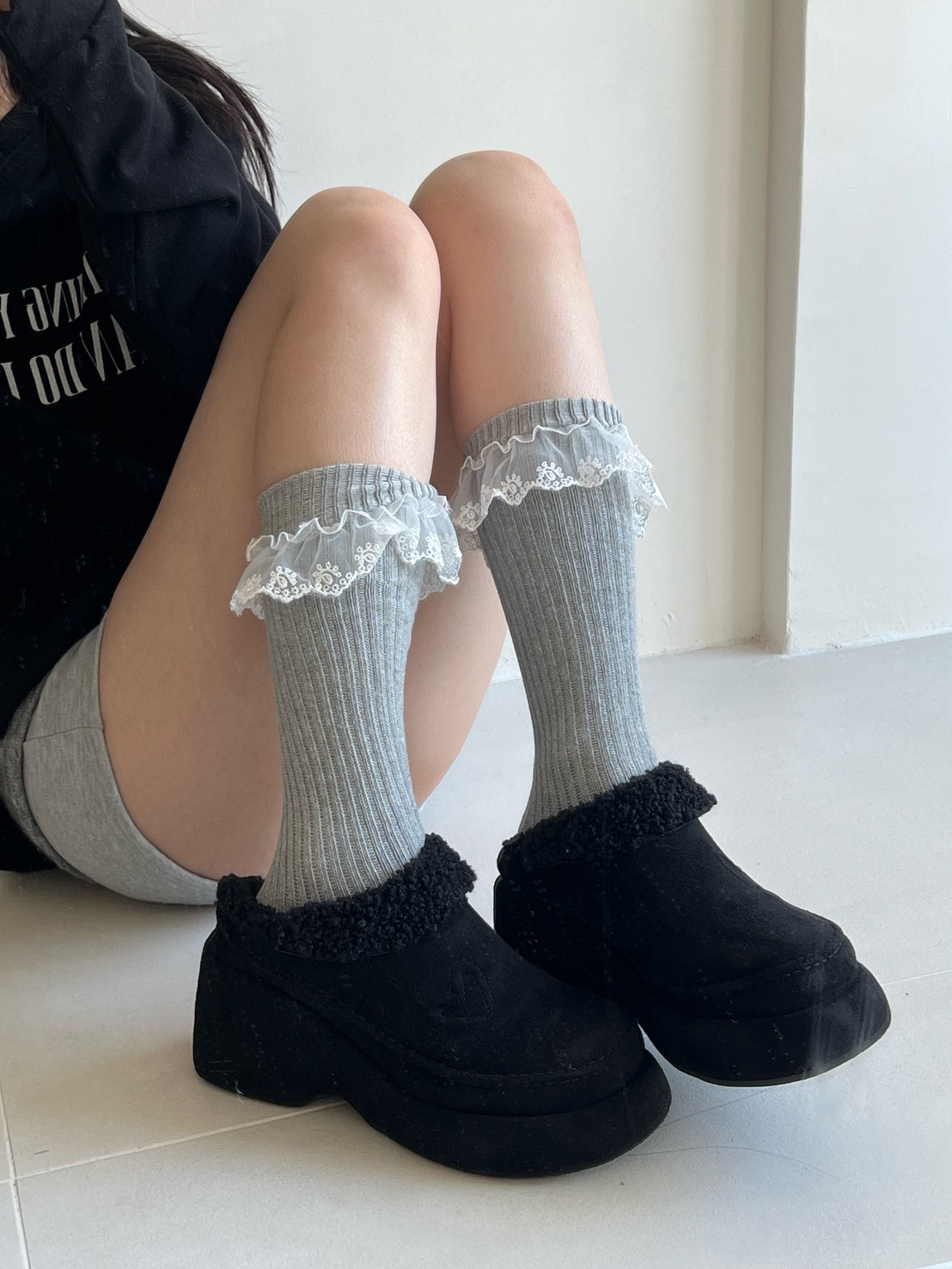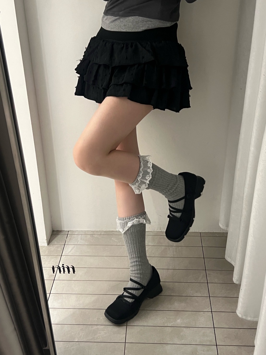 蕾絲花邊粗直坑堆堆長襪
